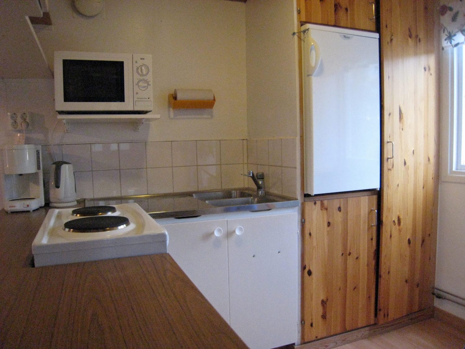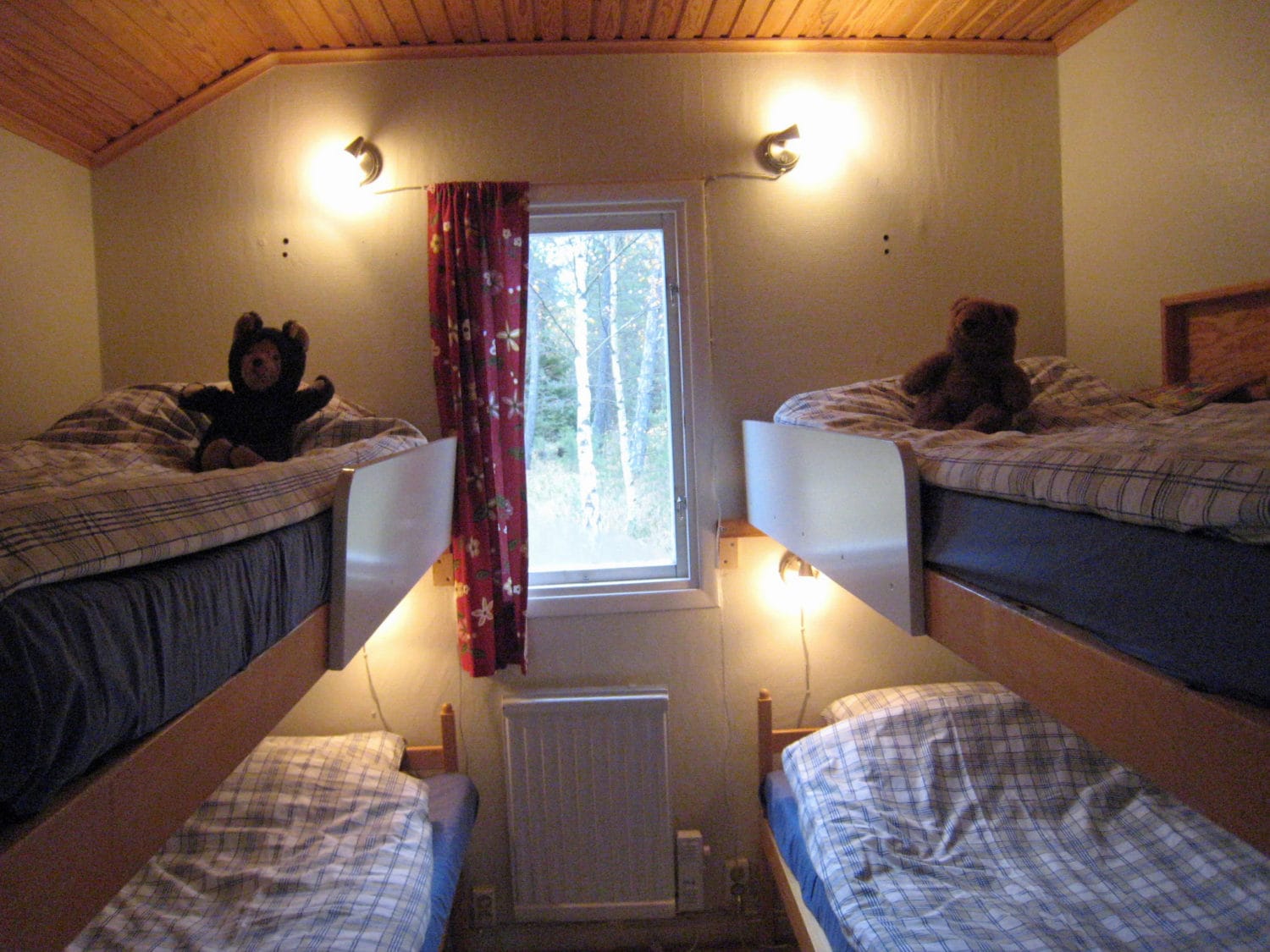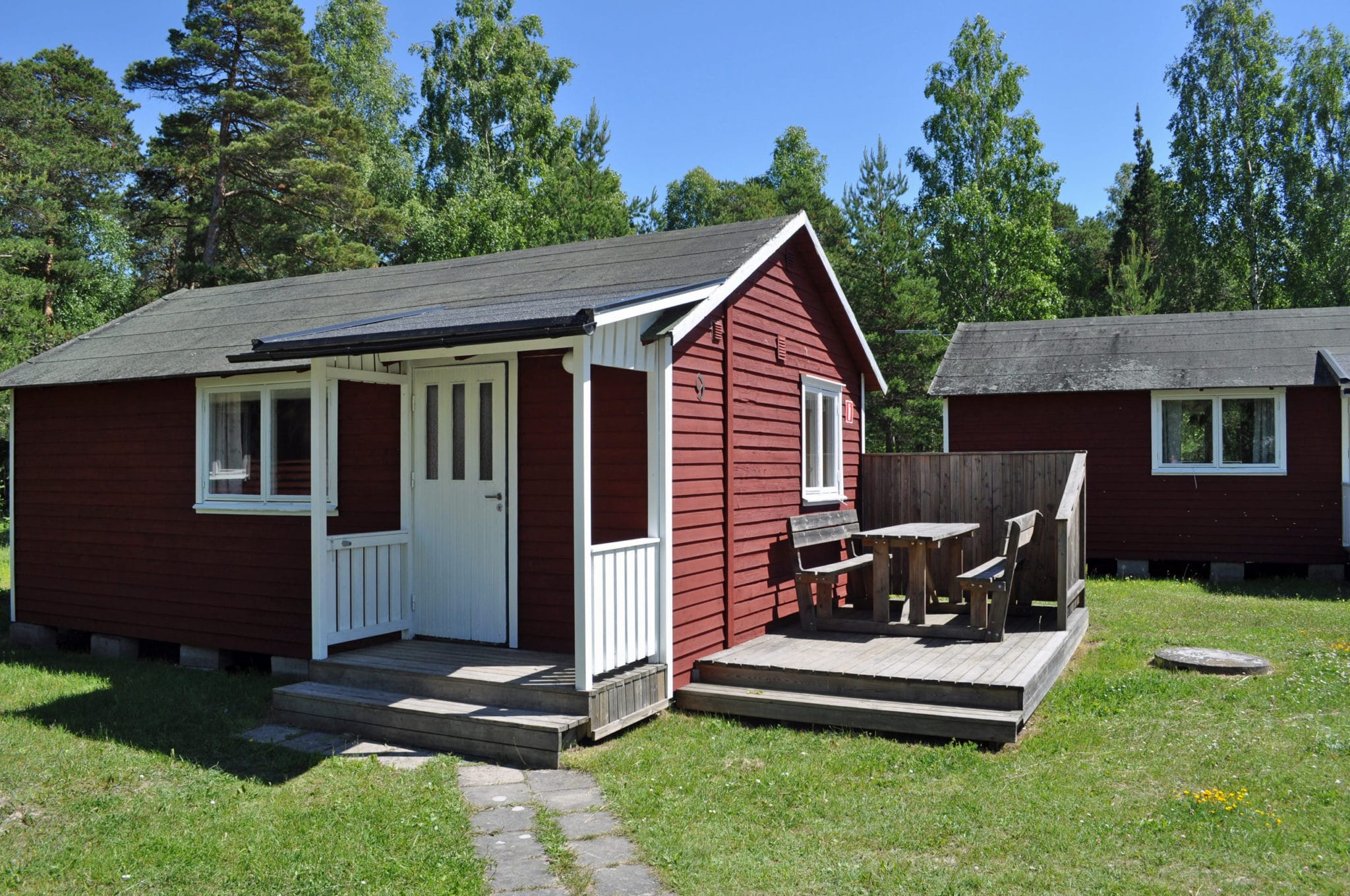 På området finns det tio stugor med vardera sex bäddar fördelade i två sovalkover i varje stuga. En alkov har två bäddar och två nedfällbara bäddar, medan den andra har en bädd och en nedfällbar. I stugorna finns toalett med dusch och ett välutrustat pentry med kyl, mikro, spis med ugn, en kaffebryggare och utrustning för sex personer. Vardagsrummen är utrustade med TV. Varje stuga har en altan och utemöbler. Kuddar och täcken finns i stugan, men gästen tar med övriga sängkläder. Tillgång till tvättstuga finns i en separat servicebyggnad. Städning ingår inte (kan köpas till). Säkra din stuga genom att förboka boende innan ankomst. Välj och boka din stuga redan idag på vår onlinebokning eller kontakta oss för att få våra bästa råd för den perfekta stugan. Vi erbjuder drop-in i mån av plats.